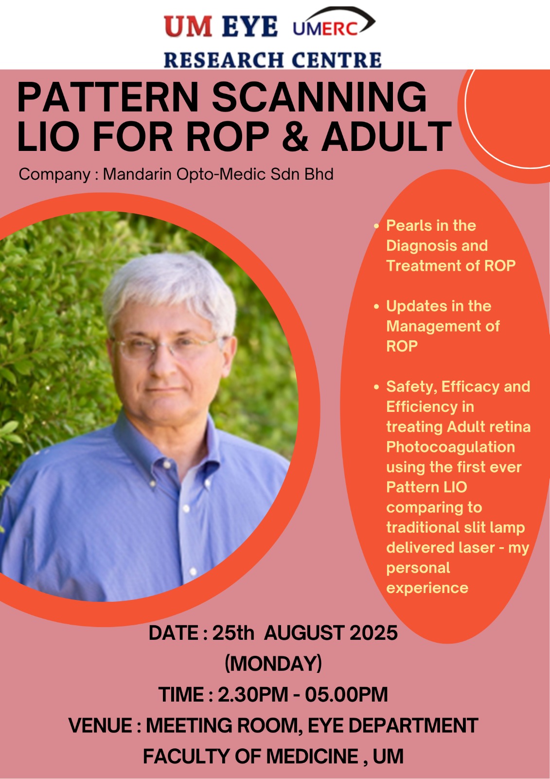 On the 26th August 2025, UMERC had the honour of hosting Dr Paul E Runge who gave an insightful talk on Pattern Scanning and LIO for Adult and Paediatric Retinopathy. Paedatric Ophthalmologists from around Malaysia were also in attendance for this session, leading to a very stimulating discussion and sharing of experiences.